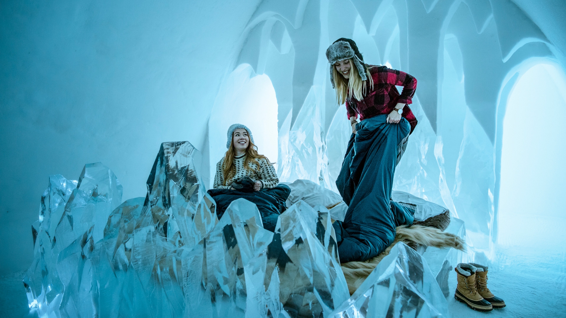 Dormir en el Icehotel es una aventura en sí misma. Los huéspedes pasan la noche a temperaturas que rondan los –5 °C, envueltos en sacos térmicos especiales sobre camas de hielo cubiertas con pieles. Pero esto no es sinónimo de incomodidad: el hotel combina este ambiente extremo con servicios de lujo, spas cercanos, saunas tradicionales y experiencias árticas como recorridos en trineos, pesca en hielo o expediciones para ver auroras boreales.