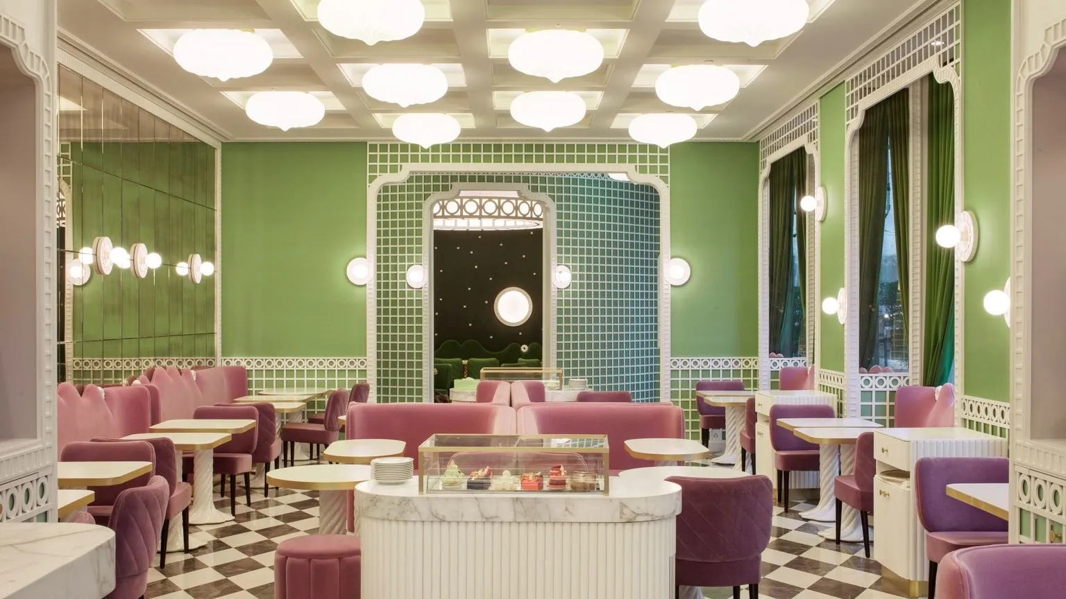 Un ejemplo emblemático es el restaurante Sketch en Londres, donde los tonos rosados, las formas curvas y la repetición de elementos construyen un universo propio. No es únicamente un espacio gastronómico; es una experiencia sensorial completa.