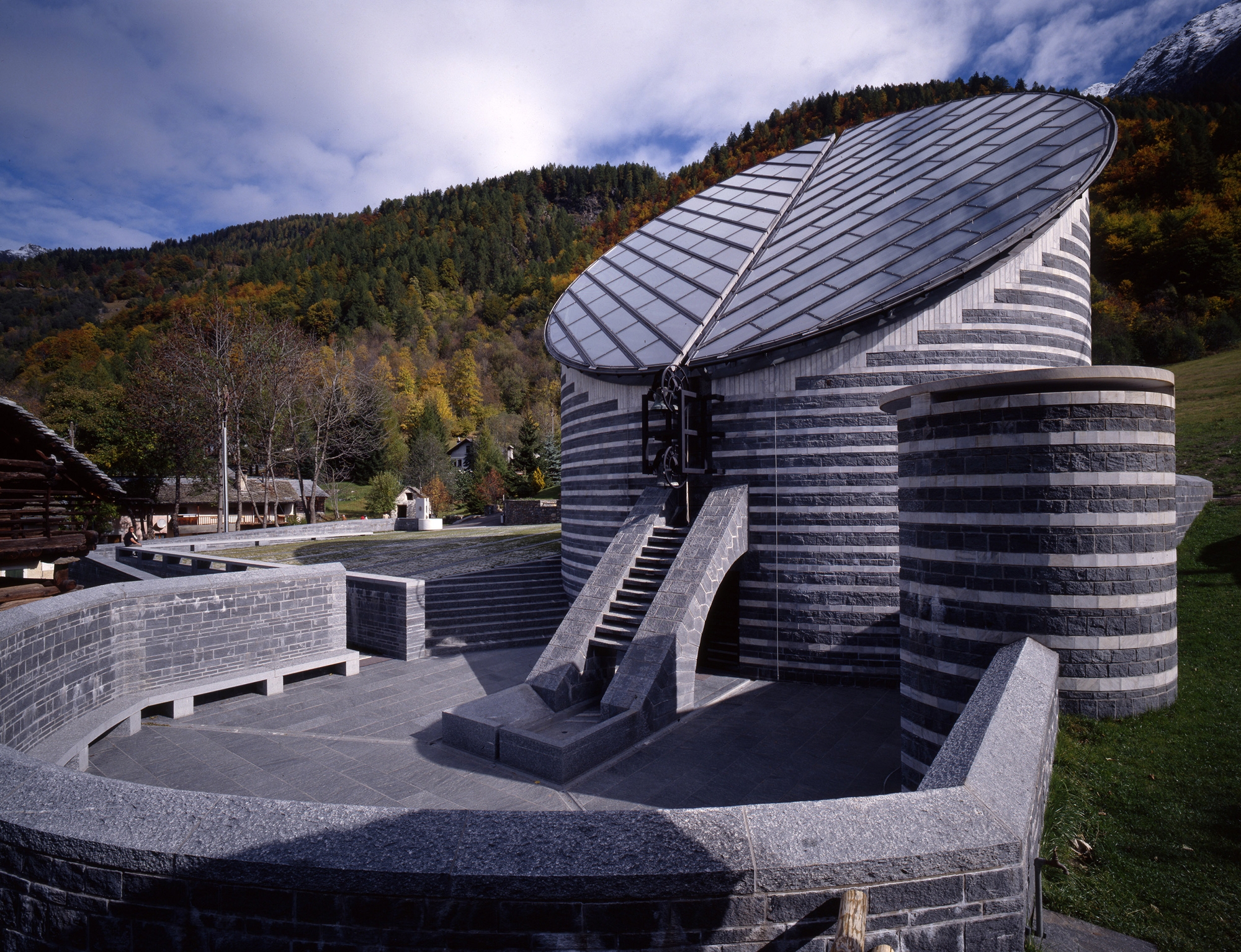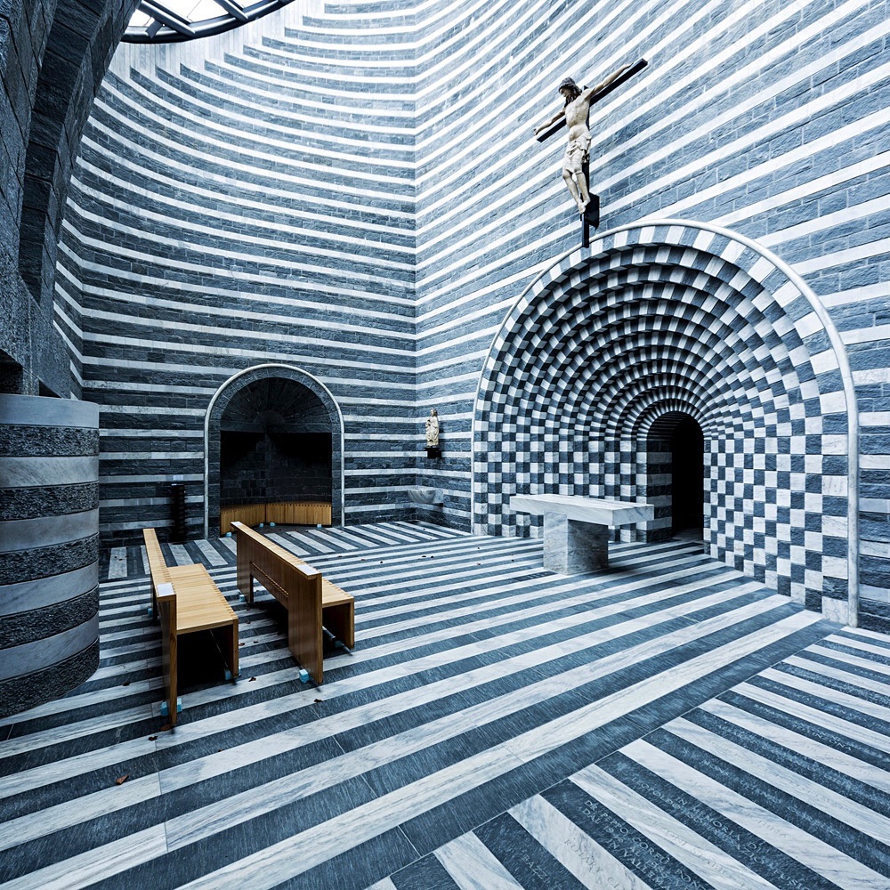 La Iglesia de San Juan Bautista en Mogno, Suiza, es tal vez la obra que mejor resume esta dimensión espiritual. Construida en mármol blanco y granito gris, la iglesia se alza como una espiral que conecta el cielo y la tierra. No hay ornamentos innecesarios; la belleza emana de la proporción, el ritmo y la luz. En palabras del propio Botta: “la arquitectura es la forma construida del sentido de la vida”.