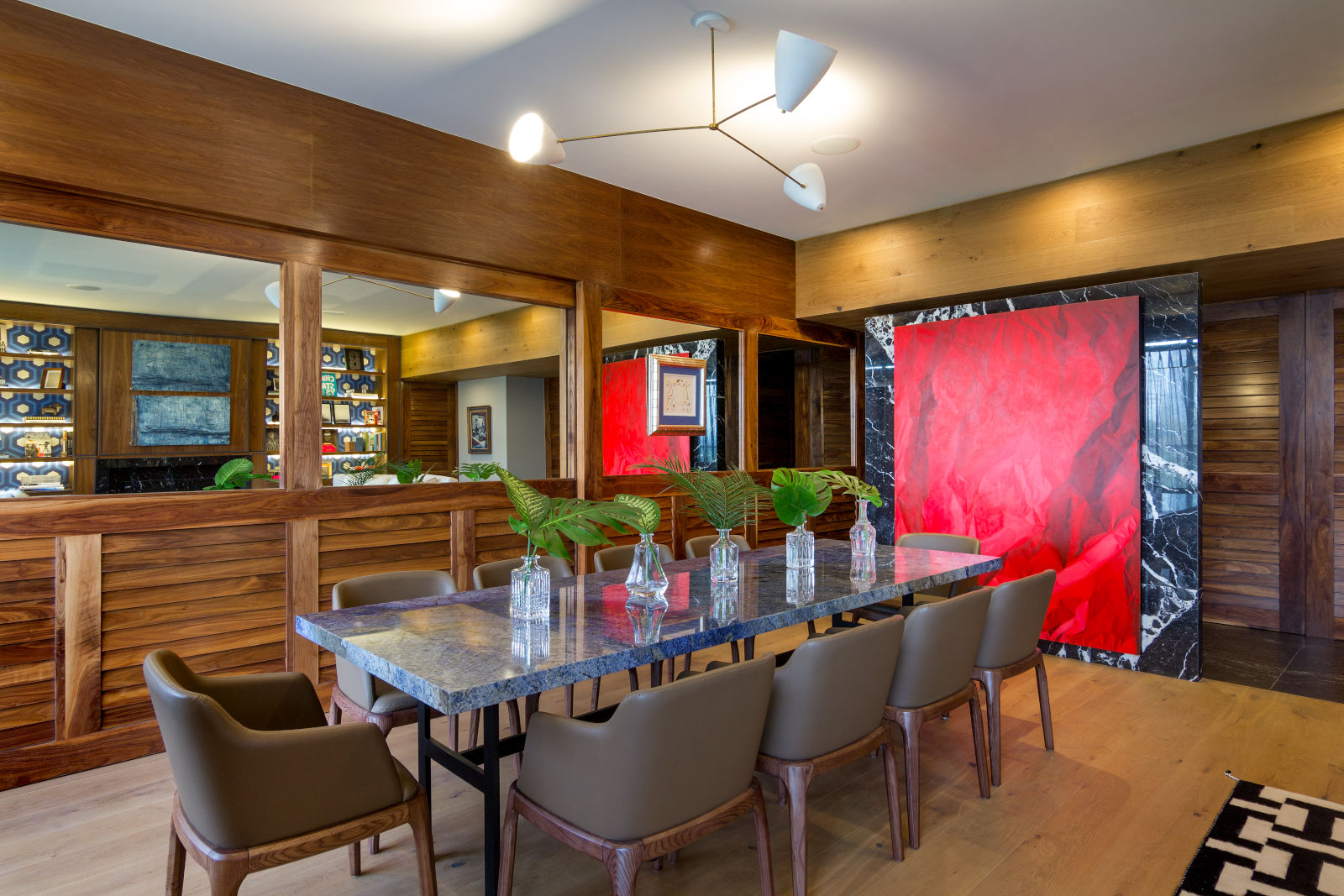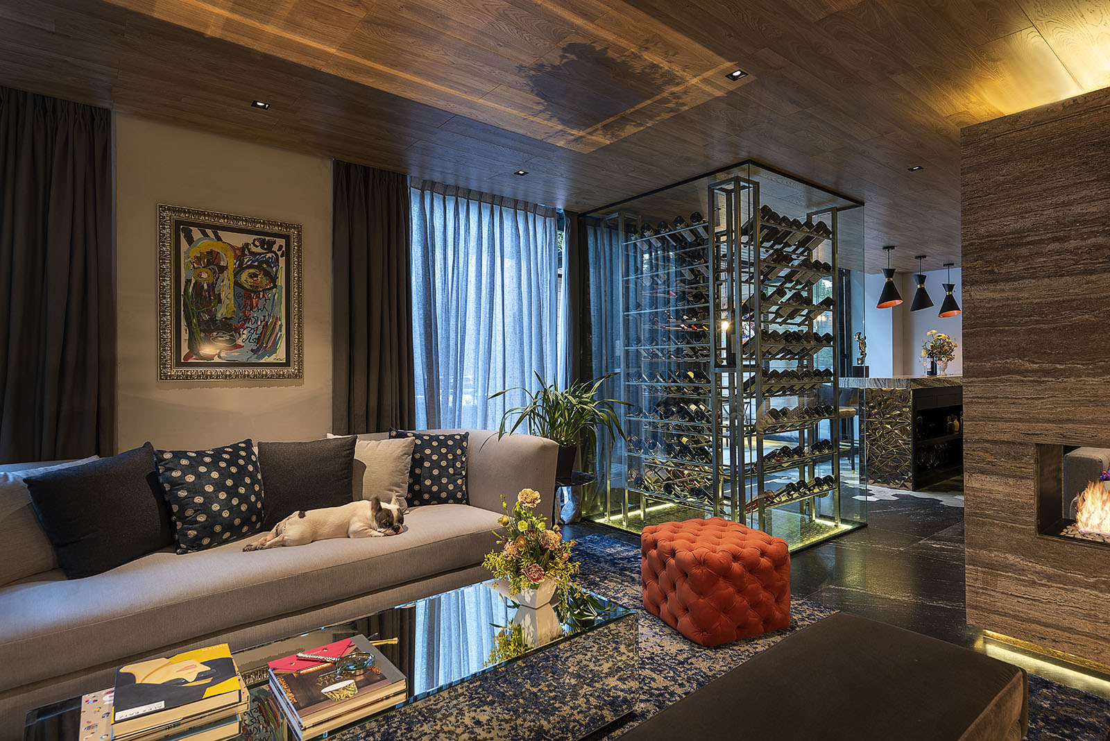 En sus proyectos, es común encontrar combinaciones arriesgadas: tapicerías vibrantes conviven con maderas nobles, piezas de arte moderno contrastan con antigüedades, y lámparas escultóricas iluminan mesas de mármol o piedra volcánica. Este “eclecticismo controlado” no es producto del azar, sino de una cuidadosa curaduría que responde a la personalidad y necesidades del cliente.